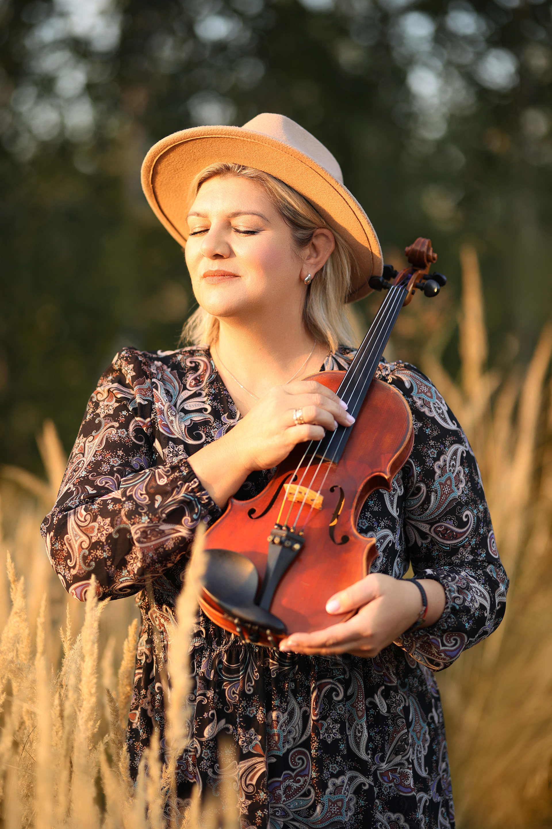 Sesja plenerowa – Kobieta i skrzypce: pasja w obiektywie Delikatność dźwięku, siła emocji i piękno natury spotykają się w jednej historii. Ta sesja plenerowa to opowieść o kobiecie, dla której muzyka jest czymś więcej niż dźwiękiem – jest sposobem na życie. Skrzypce stają się jej częścią, a każdy kadr oddaje harmonię pomiędzy artystką, instrumentem i światem wokół niej. Naturalne światło, subtelny wiatr we włosach i ciepłe barwy zachodzącego słońca tworzą tło dla emocji, które trudno opisać słowami. To sesja o pasji, wrażliwości i sile kobiecości – o chwilach, w których muzyka i fotografia łączą się w jedno.